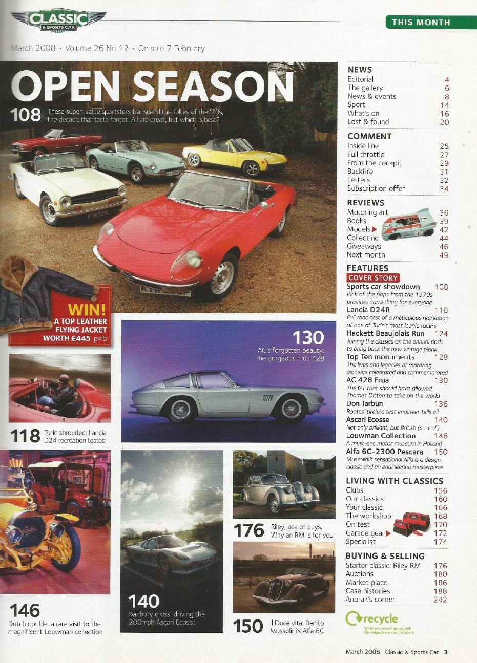 Reviews CLASSIC & SPORTSCAR 2008 MAR - AC428, LANCIA D24, ASCARI ECOSSE