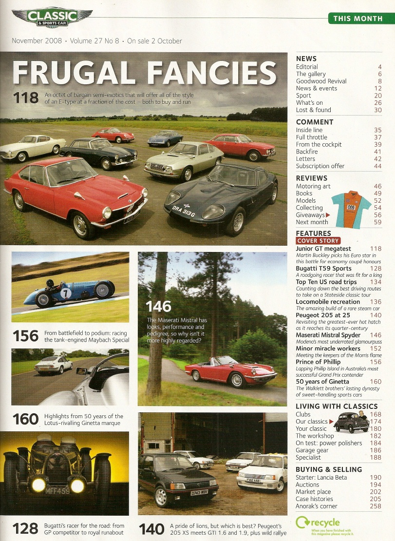 Reviews CLASSIC & SPORTSCAR 2008 NOV - MISTRAL, T59, BETA, GINETTA, GTs DUEL