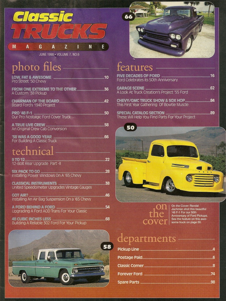 Reviews CLASSIC TRUCKS 1998 JUNE - AIR BAG SUSP, 50 YRS FORDS, '48 F-1, REAR UPGR PT 2