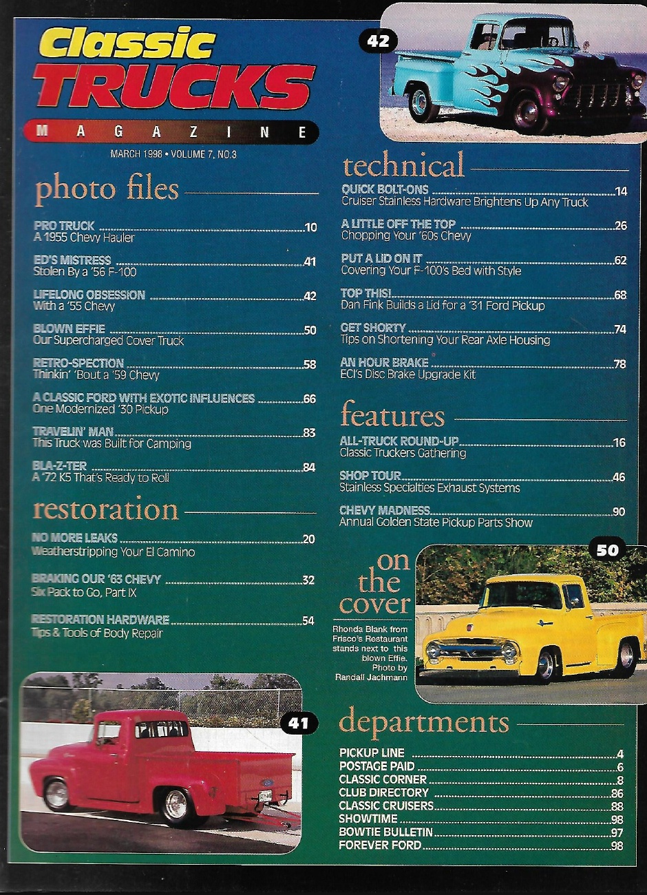 Reviews CLASSIC TRUCKS 1998 MAR - HARD TONNEAUS FOR F-100S, CHOPPING A '60 CHEVY