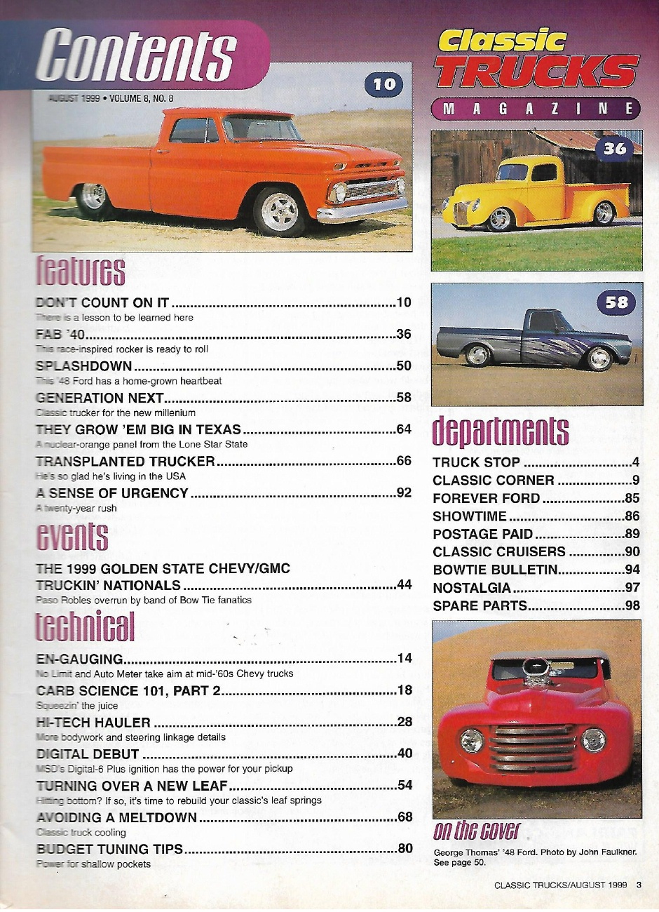 Reviews CLASSIC TRUCKS 1999 AUG - CARB SCIENCE PT2, '48 FORD, FAB '40, 99 TRUCKIN' NATS