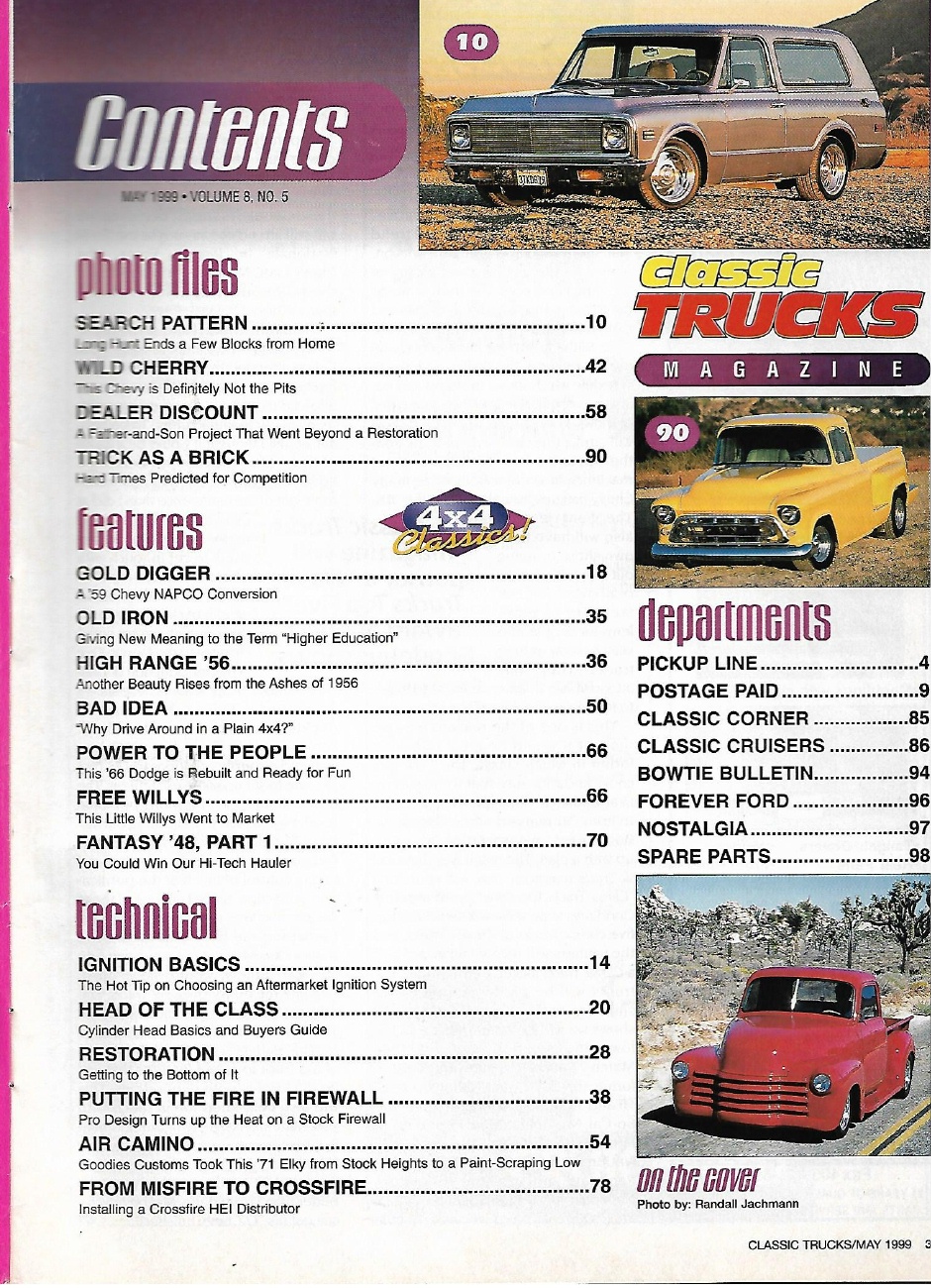 Reviews CLASSIC TRUCKS 1999 MAY - '59 CHEVY NAPCO, 66 DODGE, FANTASY 48 PT 1, IGNITIONS