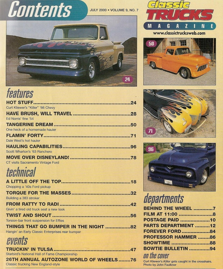 Reviews CLASSIC TRUCKS 2000 JULY - '66 "KILLER" CHEVY, '54 BY NORRIS, '63 RANCHERO