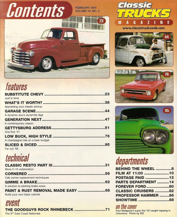 Reviews CLASSIC TRUCKS 2001 FEB - BUILD A BLAST, CAB CORNERS, CLASSIC RESTO PT 3