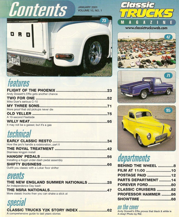 Reviews CLASSIC TRUCKS 2001 JAN - RESTO PT 2, C-10, 10-SEC FLEETSIDE, LOKAR SHIFTER