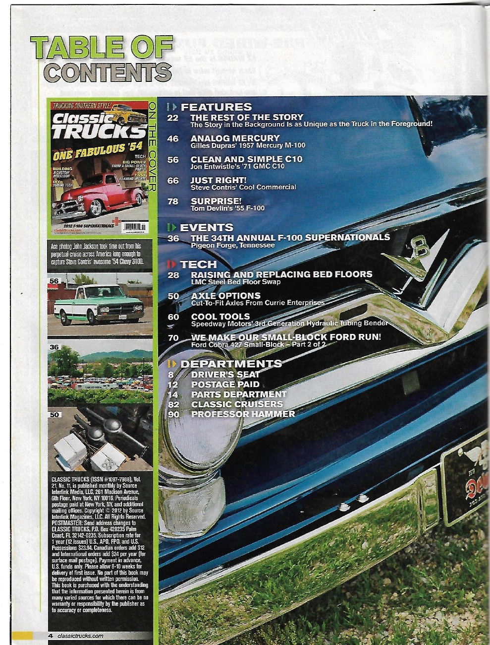 Reviews CLASSIC TRUCKS 2012 NOV - REAREND UPD,'57 MERCURY M-100, '71 GMC C10, F100 NATS*
