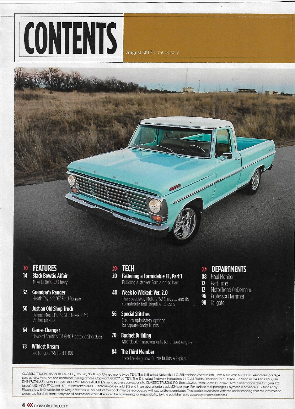 Reviews CLASSIC TRUCKS 2017 AUG -'67 FORD RANGER, '52 CHEVY, '48 STUDEBAKER M5, '67 GMC