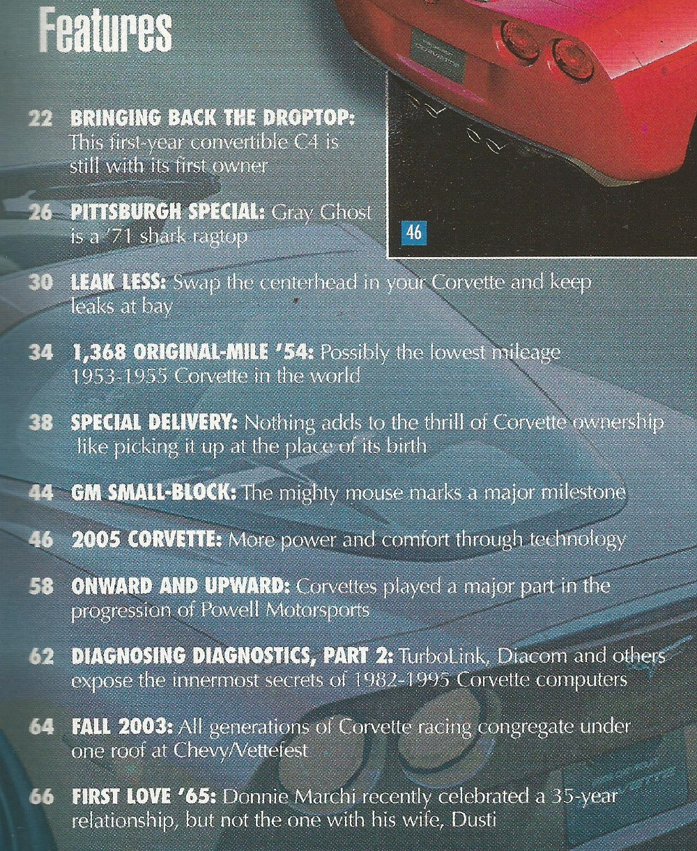 Reviews CORVETTE ENTHUSIAST 2004 MAY - NEW C6, L79 65, 71 ROADSTER, SWEET 54