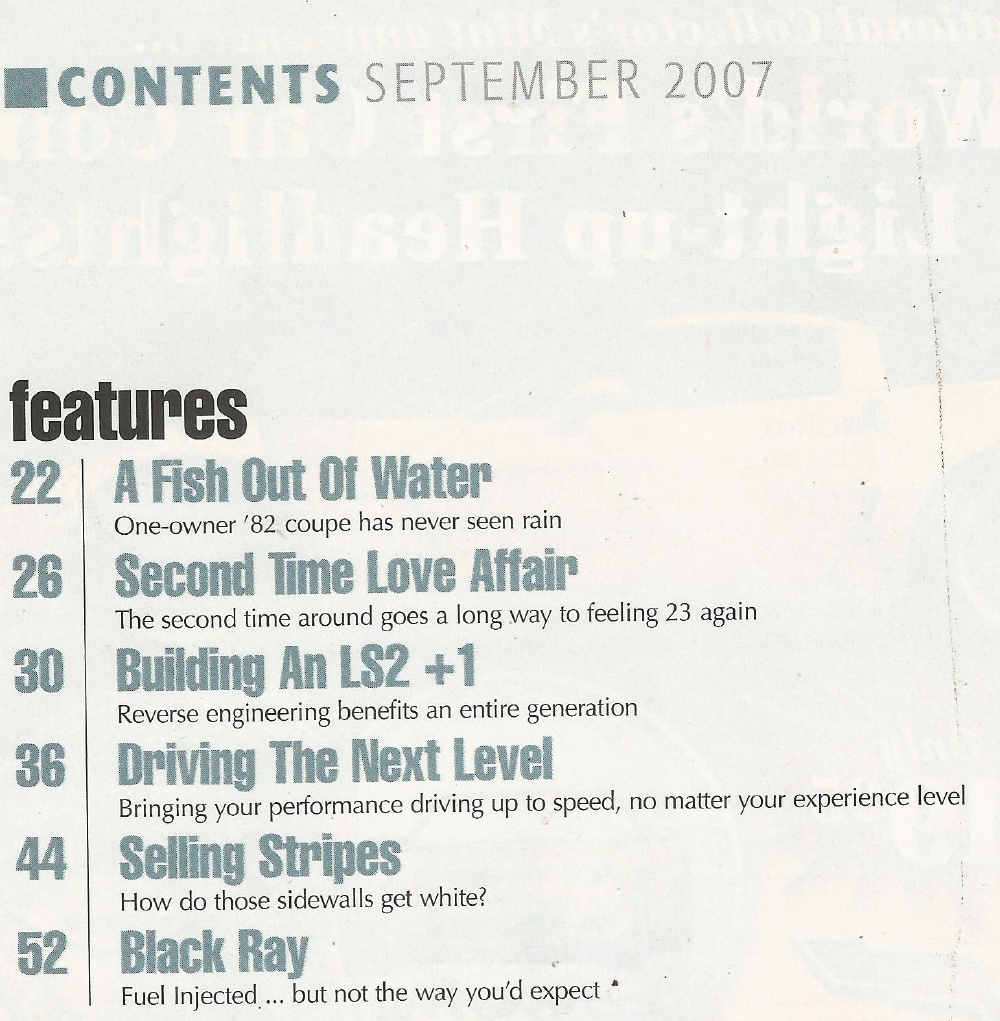 Reviews CORVETTE ENTHUSIAST 2007 SEPT - LS2 HOP-UP, COOL 62 & 82, HILBORN FI 65