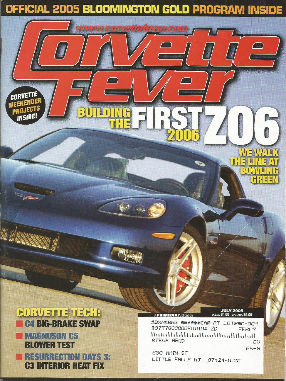 CORVETTE FEVER 2005 JULY - MAGNUSON C5, 1st NEW Z06, HARVEY-BAILEY C3*