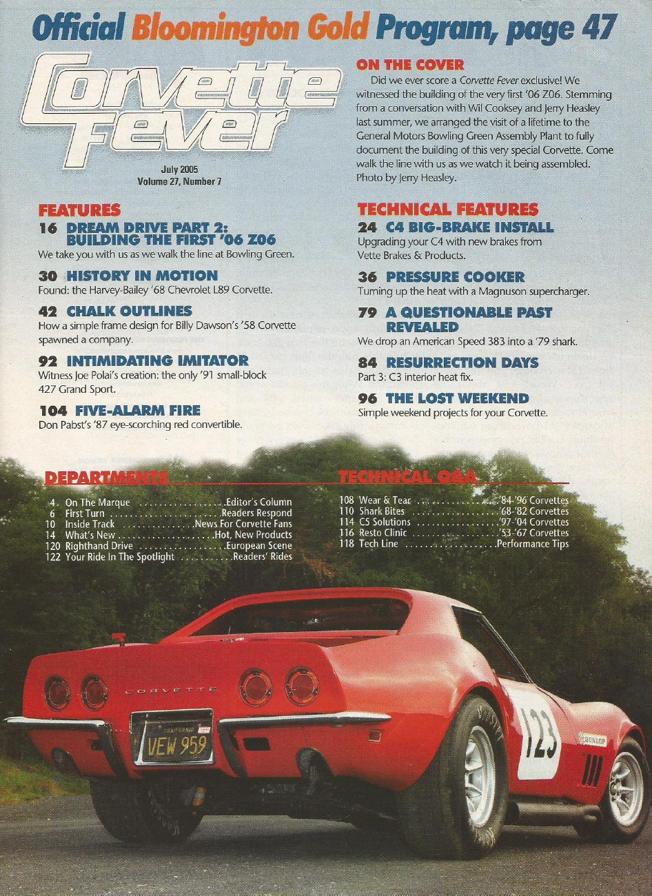 Reviews CORVETTE FEVER 2005 JULY - MAGNUSON C5, 1st NEW Z06, HARVEY-BAILEY C3*