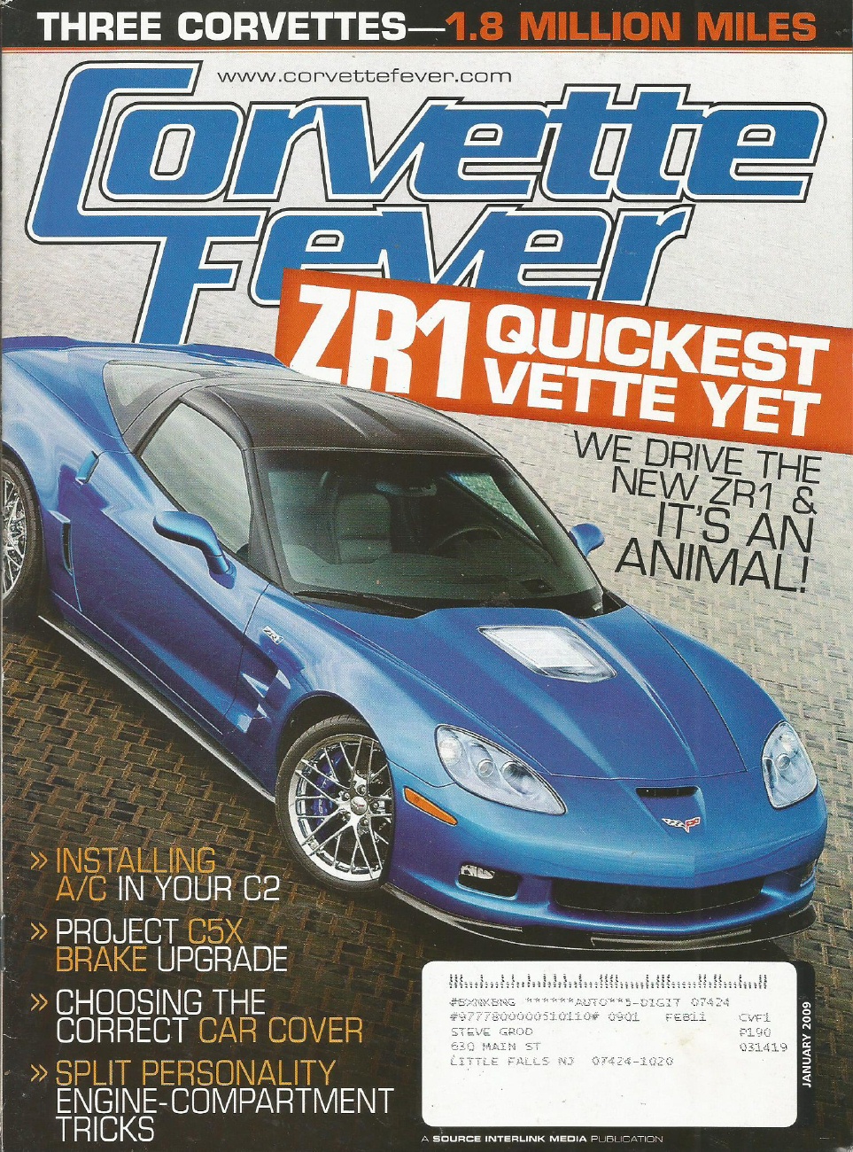 CORVETTE FEVER 2009 JAN - NEW ZR1, C2 A/C INSTALL, ENGINE BAY DETAILING