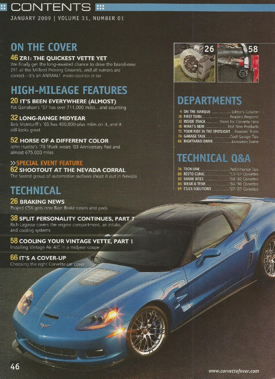 Reviews CORVETTE FEVER 2009 JAN - NEW ZR1, C2 A/C INSTALL, ENGINE BAY DETAILING