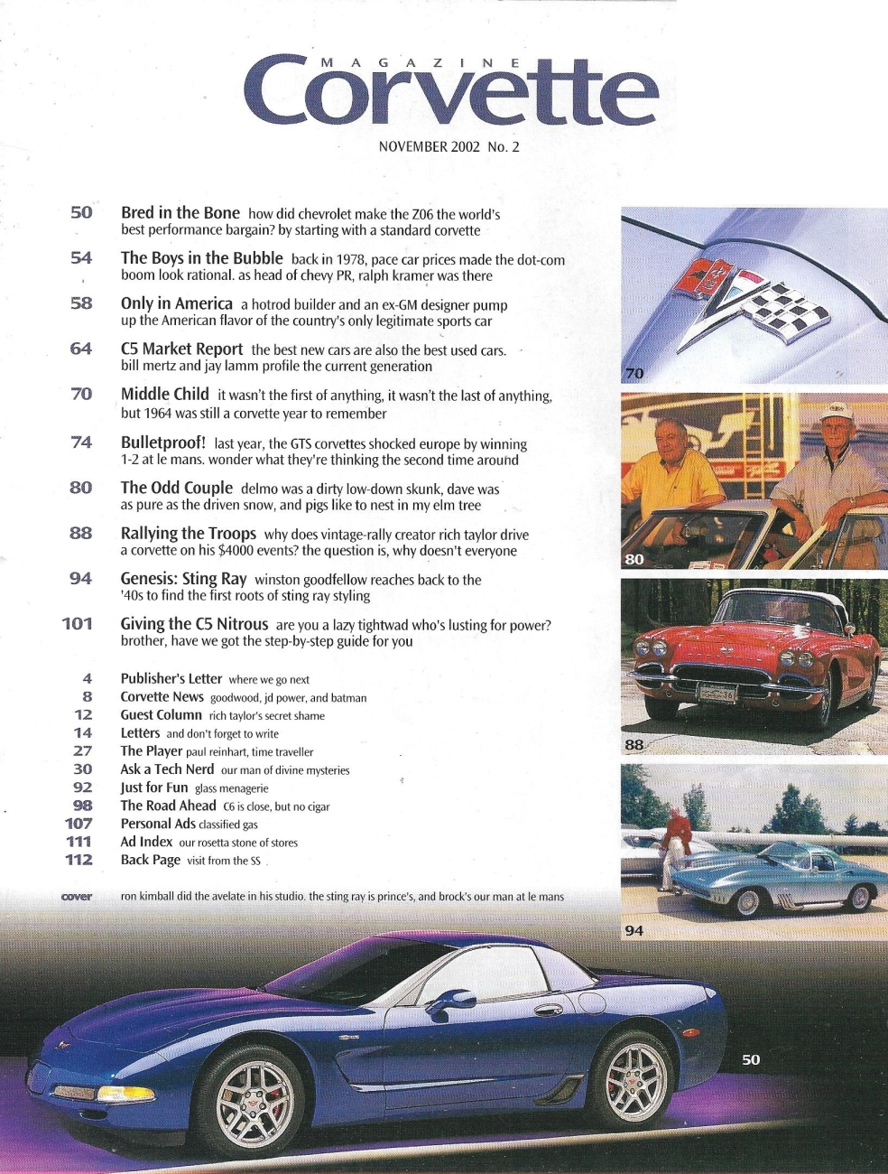 Reviews CORVETTE MAGAZINE 2002 NOV - AVELATE RETRO, '64 RAGTOP, C5 NITROUS, DELMO&DAVE