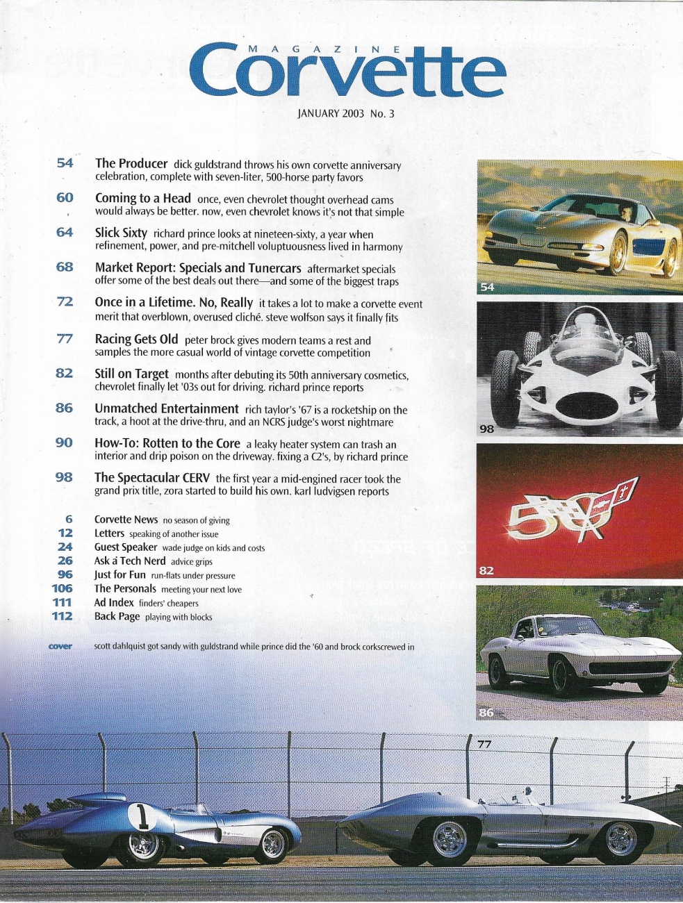 Reviews CORVETTE MAGAZINE 2003 JAN - GULSTRAND, LAGUNA, '67 RACER, '03 ROAD TEST