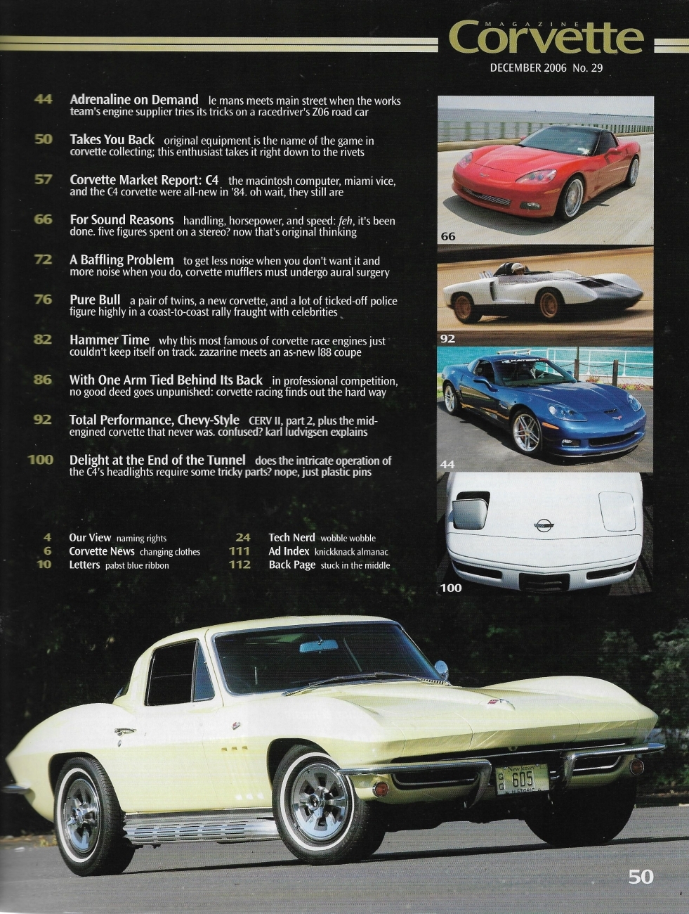 Reviews CORVETTE MAGAZINE 2006 DEC - C6 GOES TO 11, '65 COUPE,CORVETTE RACING, MUFFLERS