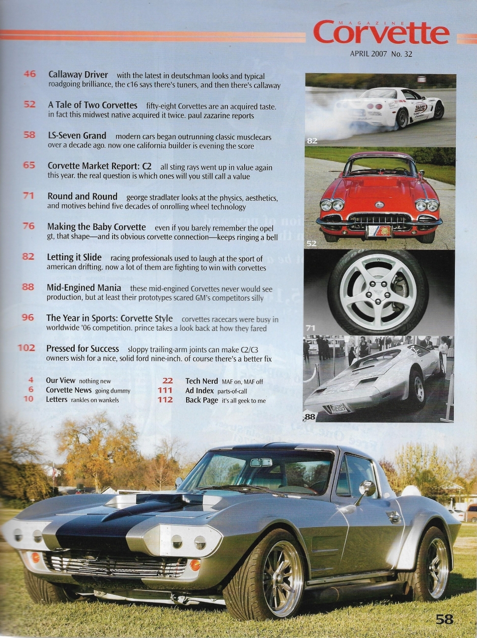 Reviews CORVETTE MAGAZINE 2007 APR - CALLAWAY C16 TEST, LS7 GRAND, '58 VETTES, MID ENG?*