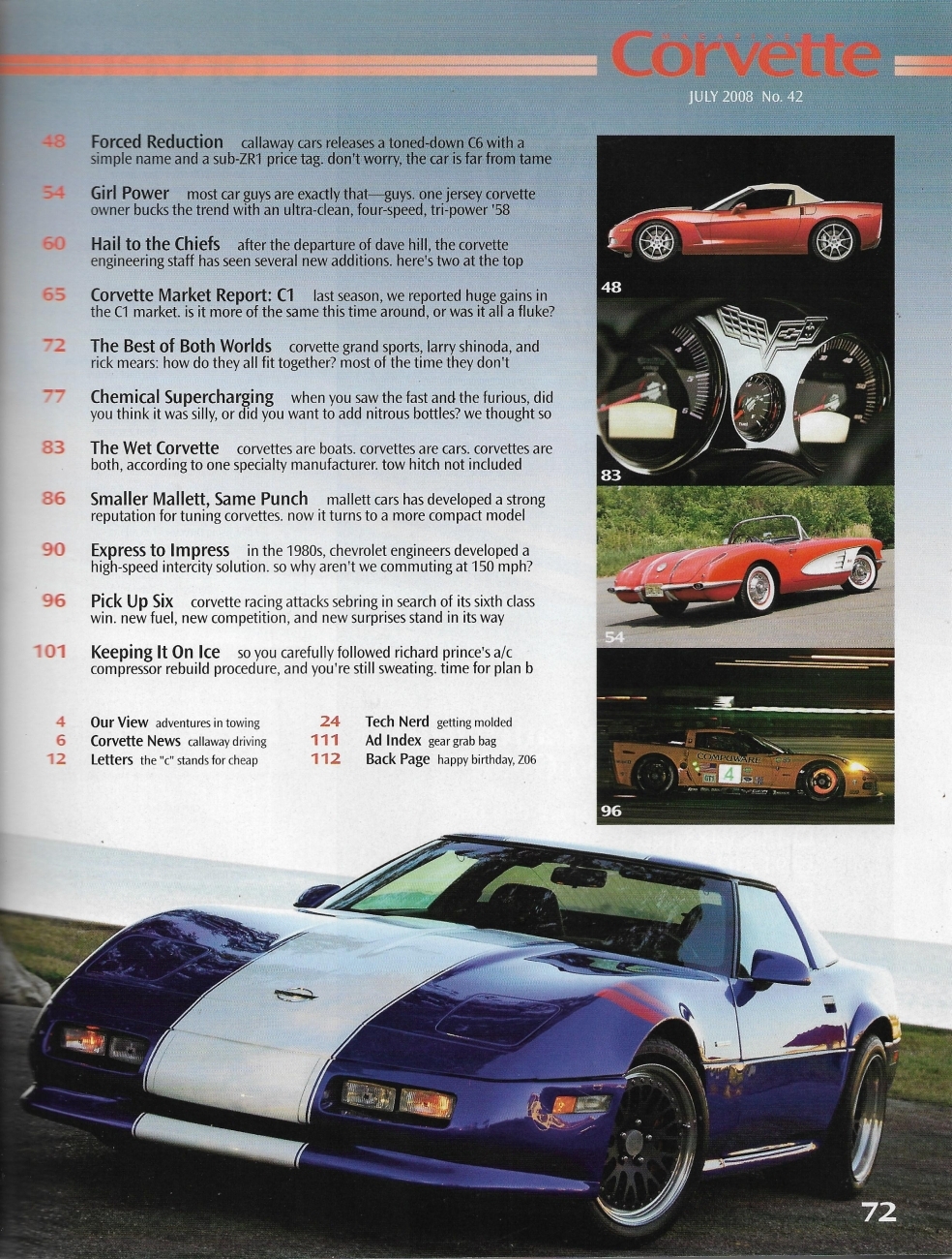 Reviews CORVETTE MAGAZINE 2008 JULY - C6 BOAT,SEBRING 6, MALLETT SOLSTICE, CALLAWAY Z06