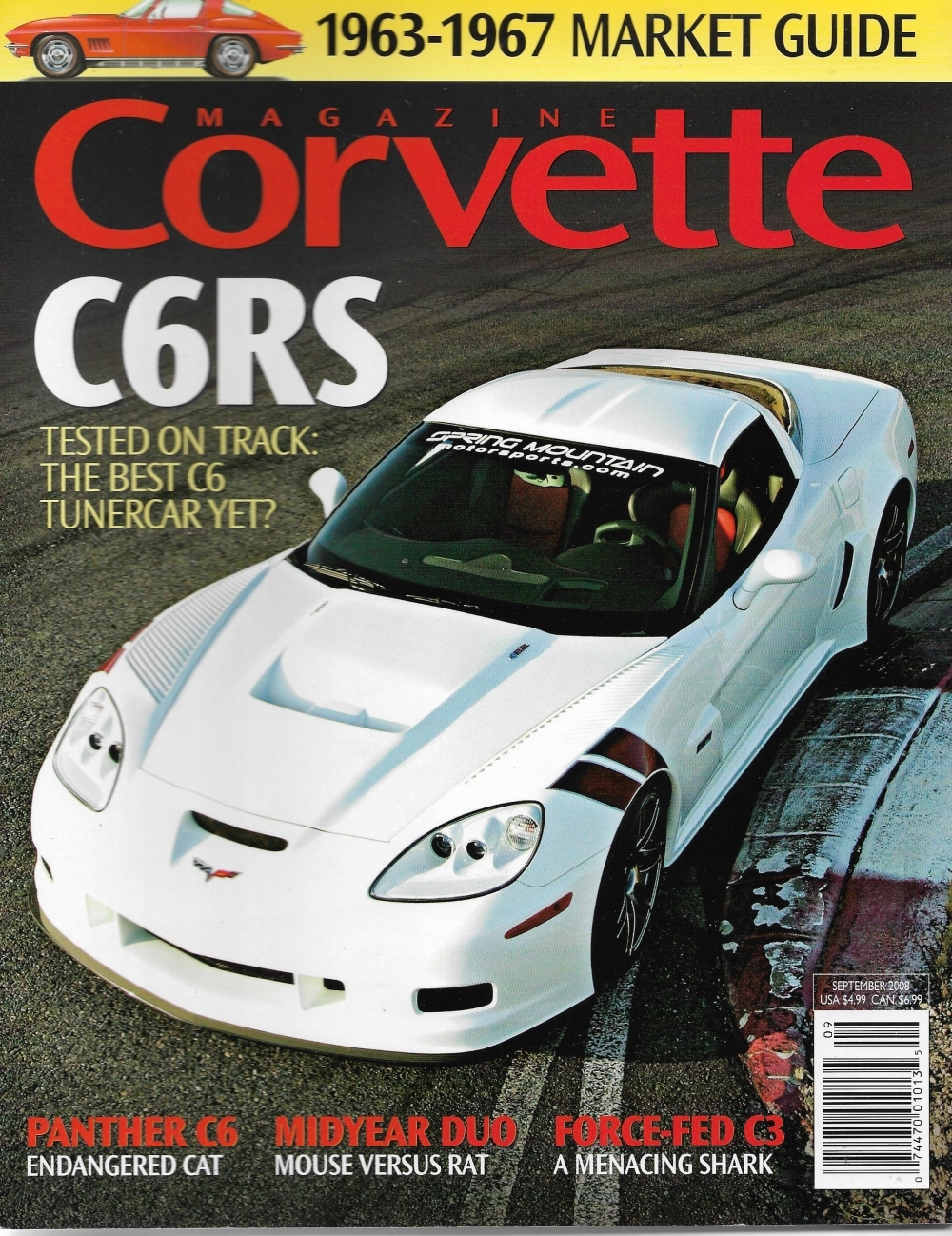 CORVETTE MAGAZINE 2008 SEPT - TESTING C6 TUNERCAR C6RS, PANTHER C6,FORCE-FED C3