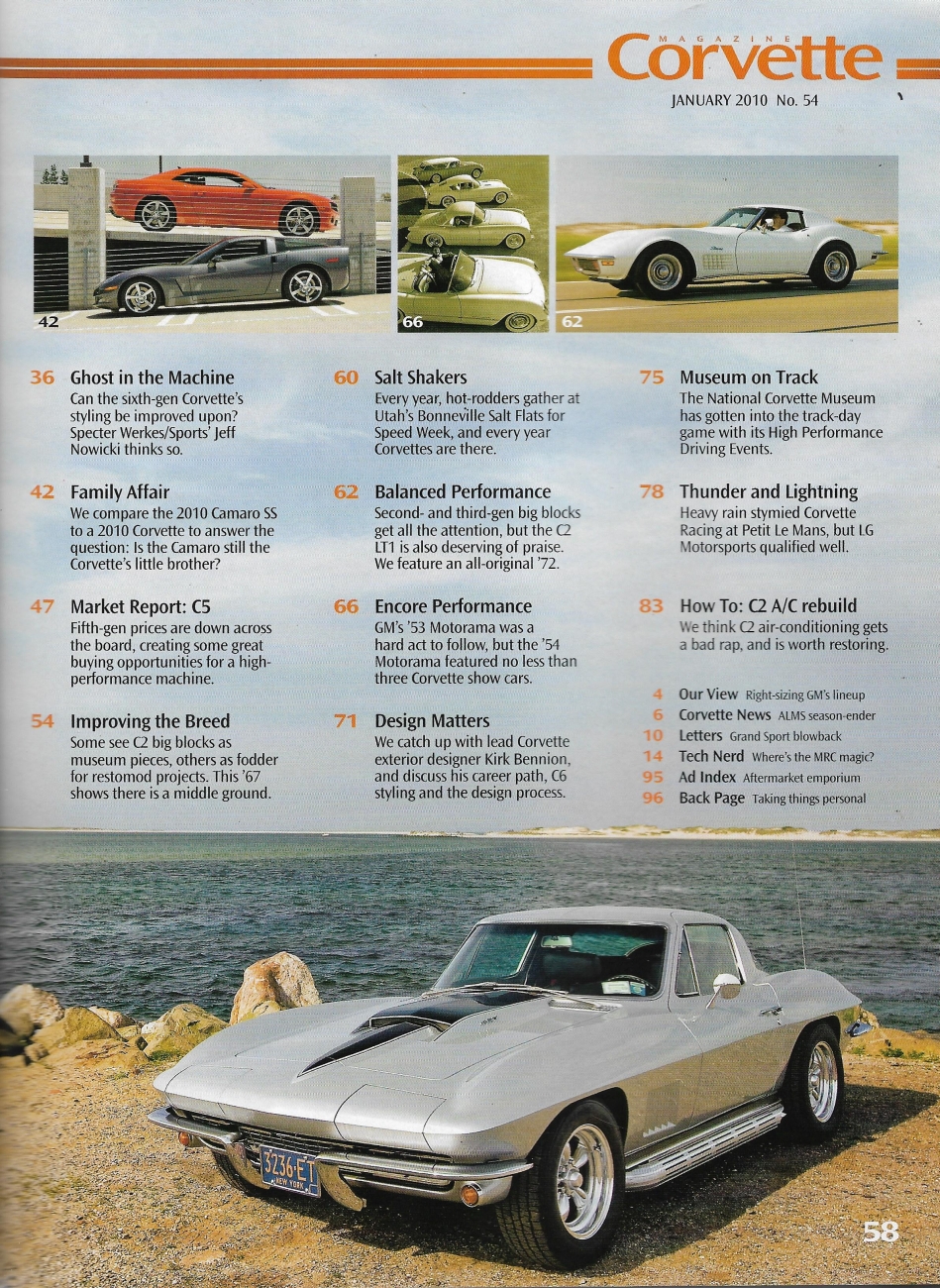 Reviews CORVETTE MAGAZINE 2010 JAN - SPECTER WERKES GTR WIDE BODY, C3 LT1 V8, '54 SHOW