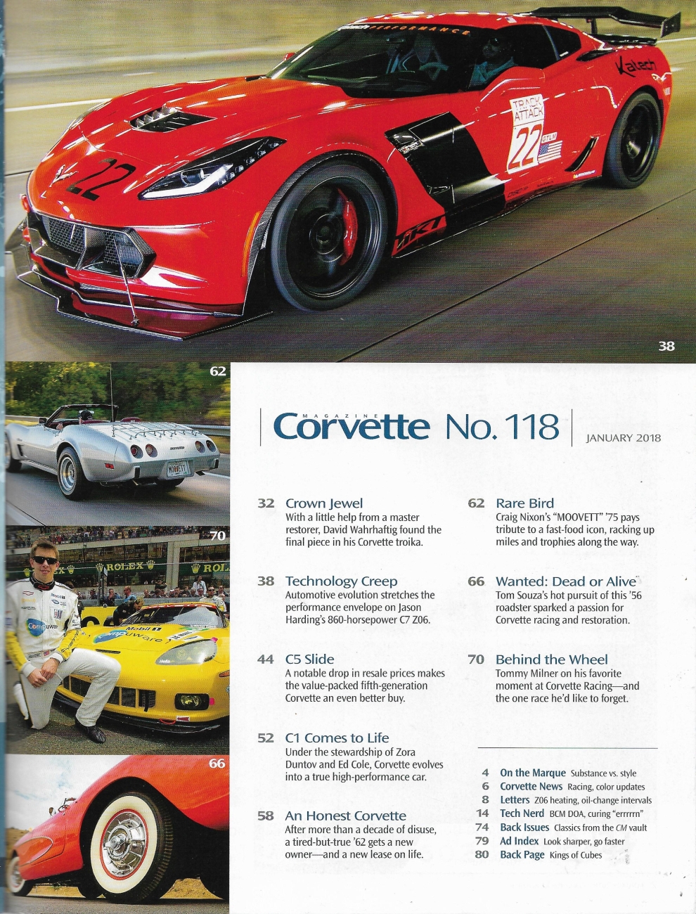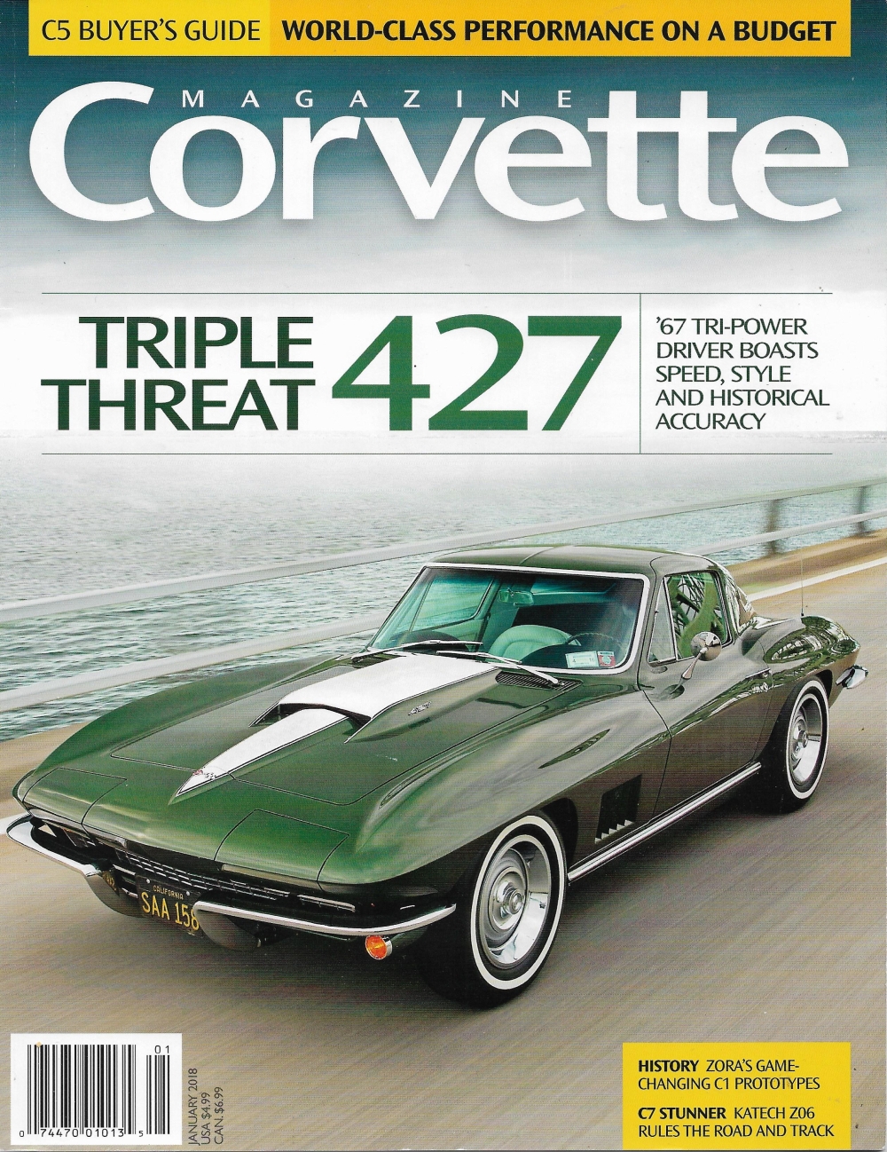 Reviews CORVETTE MAGAZINE 2018 JAN - '67 427,ZORA'S C1 P-TYPES, KATECH Z06, MOOVET '75
