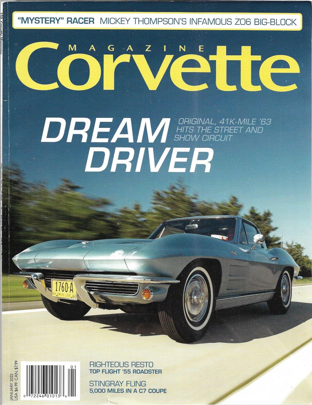 CORVETTE MAGAZINE 2022 JAN - MICKEY THOMPSONs Z06 RACER, COOL '55 TOP FLIG