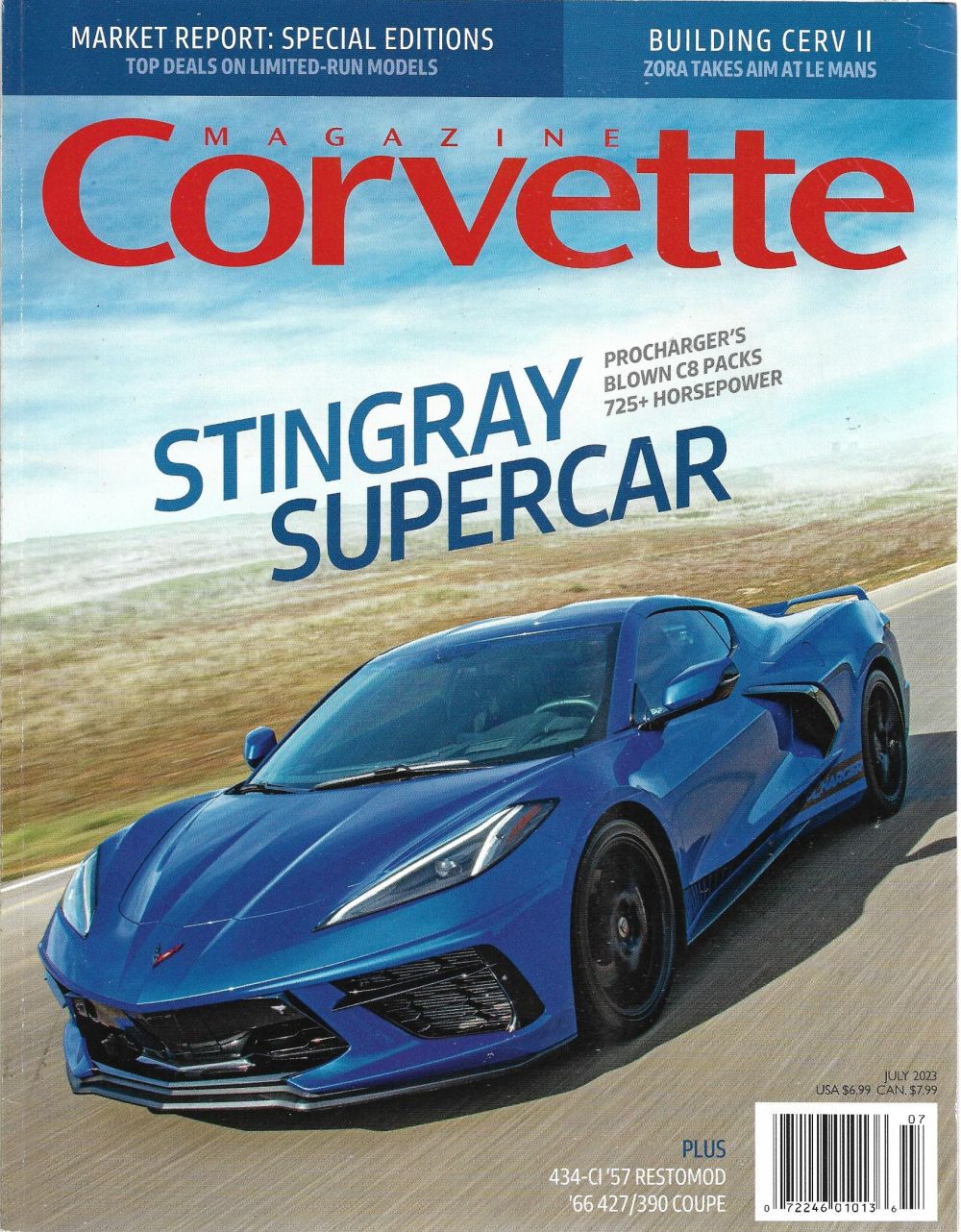 CORVETTE MAGAZINE 2023 JULY - PROCHARGER C8, CERV II, WILD ORANGE C3 COUPE