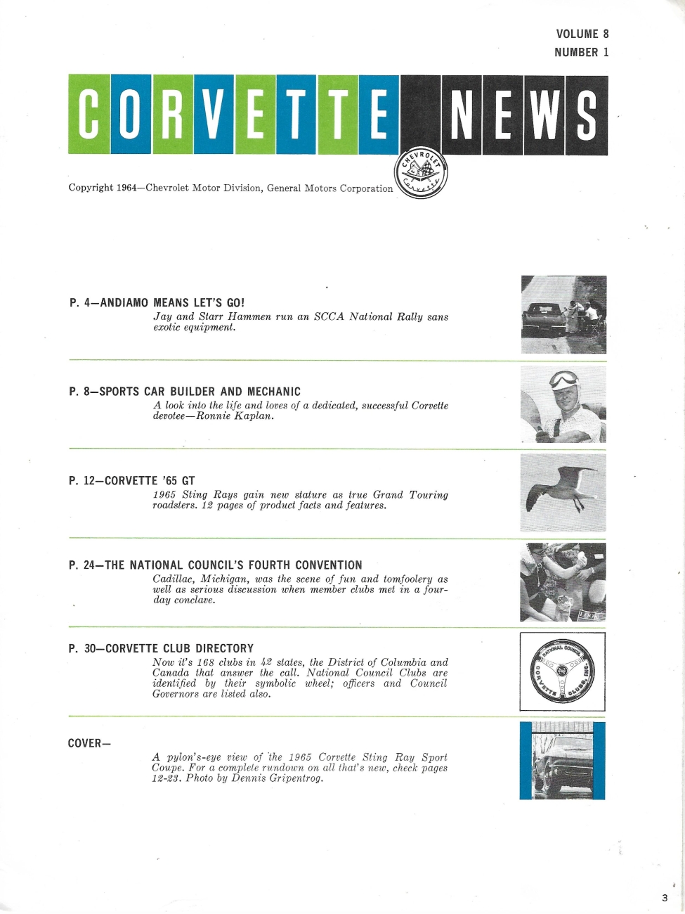 CORVETTE NEWS - THE CORVETTE OWNER'S MAGAZINE 1964 VOL 8 NO 1