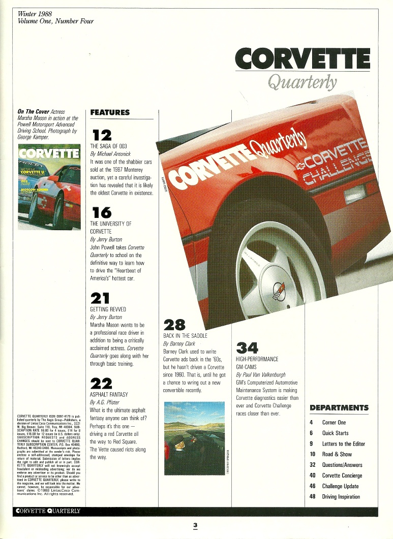 Reviews CORVETTE QUARTERLY 1988 WINTER - 505HP Z06,TIFFANY FALLON,COUPE V BMW V PORSCHE