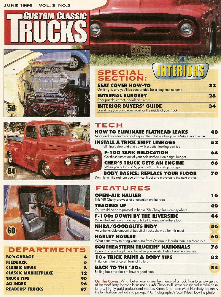 Reviews CUSTOM CLASSIC TRUCKS 1996 JUNE - CHER'S TRUCK, '48 CHEV, HARLEY HAULER,LINKAGE