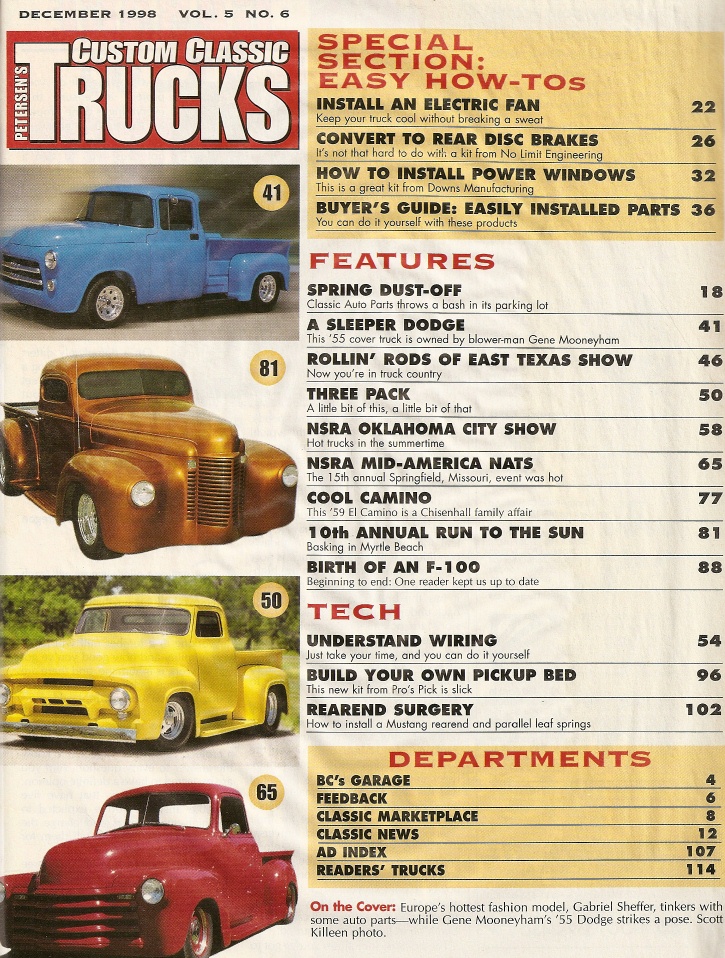 Reviews CUSTOM CLASSIC TRUCKS 1998 DEC - PWR WIN, ELEC FAN, '55 DODGE, '59 CAMINO,WIRES
