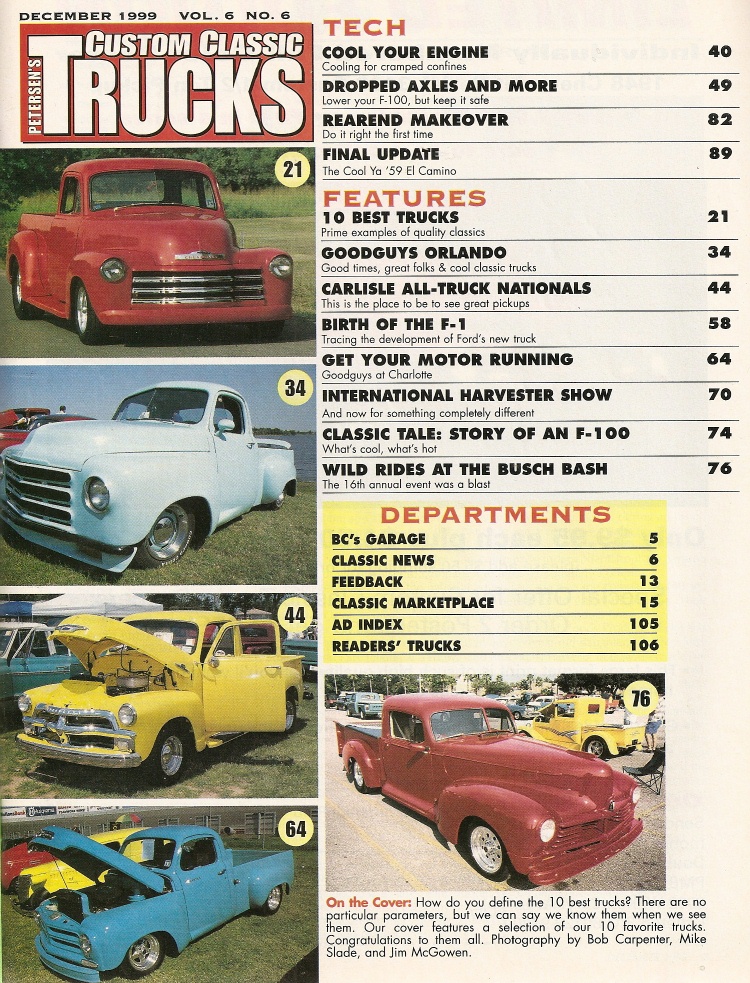 CUSTOM CLASSIC TRUCKS 1999 DEC -There is no description for this magazine yet. See picture of cover and contents below for details. ![]() ![]() |