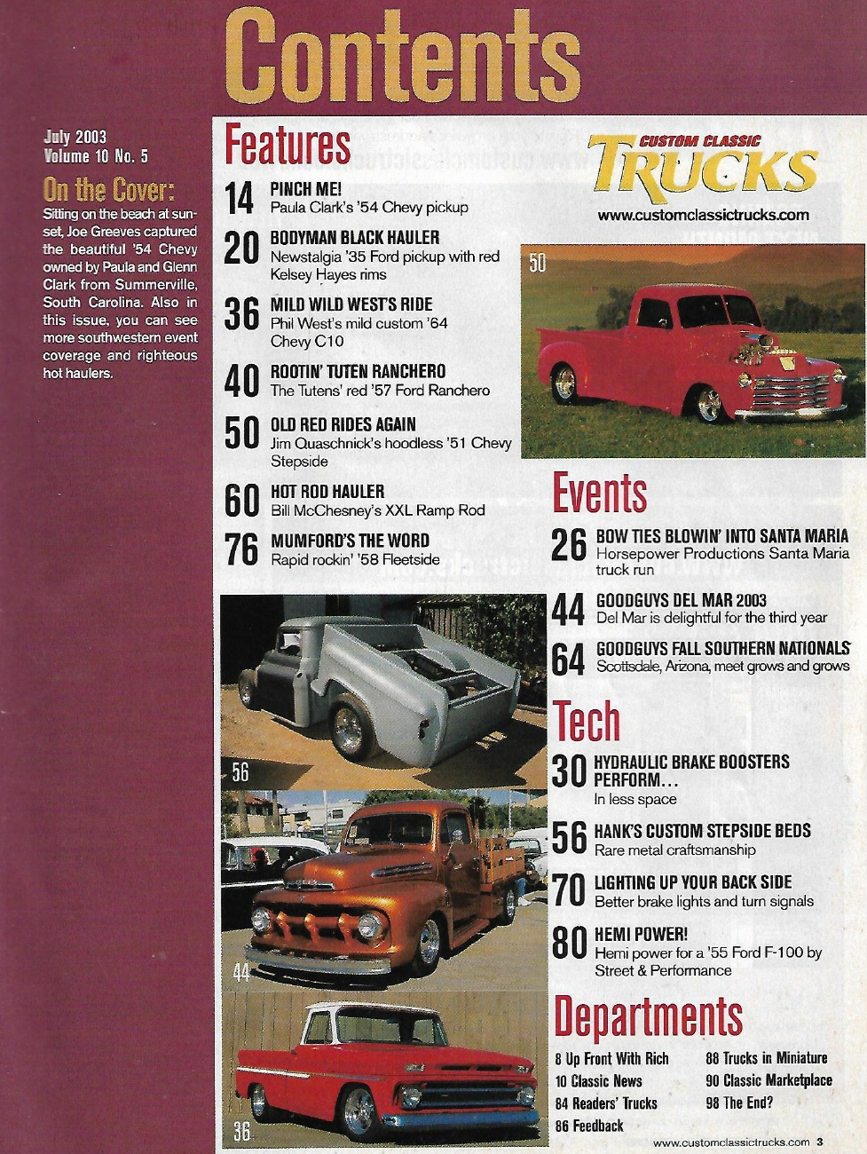 Reviews CUSTOM CLASSIC TRUCKS 2003 JULY - '54 CHEVY, '64 CHEVY C10, '57 RANCHERO