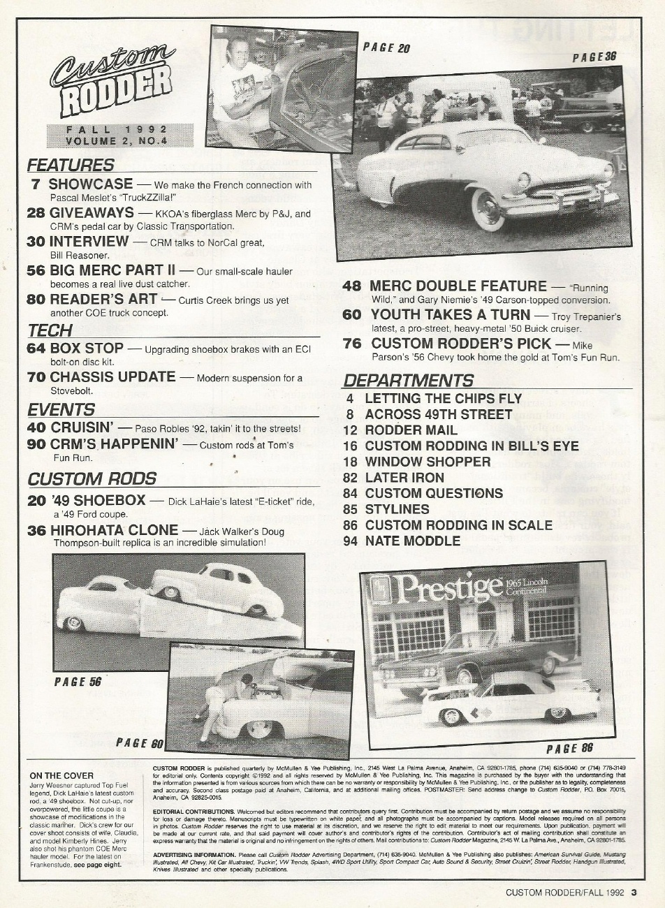 CUSTOM RODDER 1992 FALL - '49-'51 FORD DISC BRAKES, DICK LA HAIE, PASO ROBLES