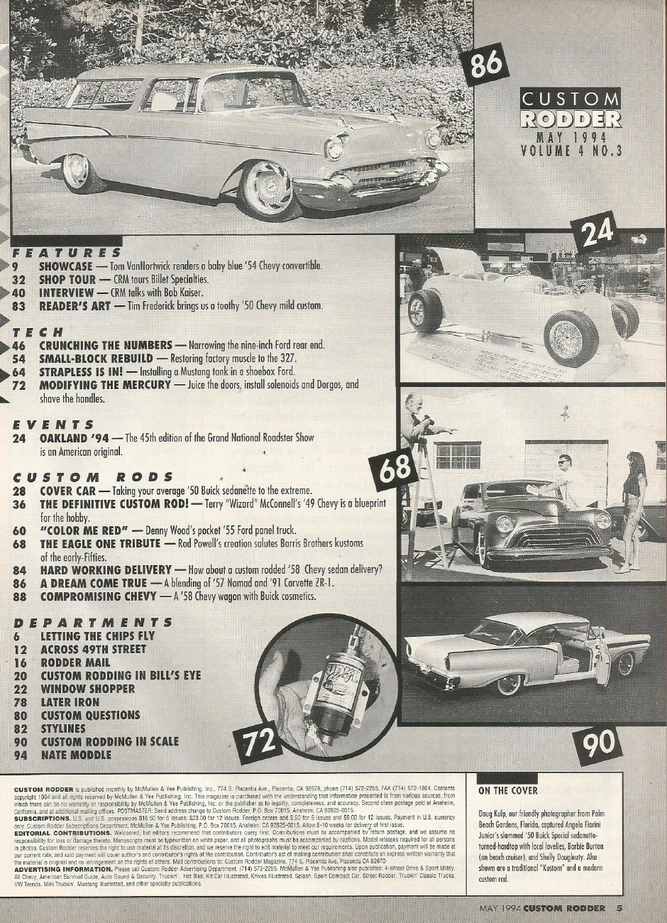 Reviews CUSTOM RODDER 1994 MAY - OAKLAND ROADSTERS, REAR-END NARROWED, AUTO TRANS ID