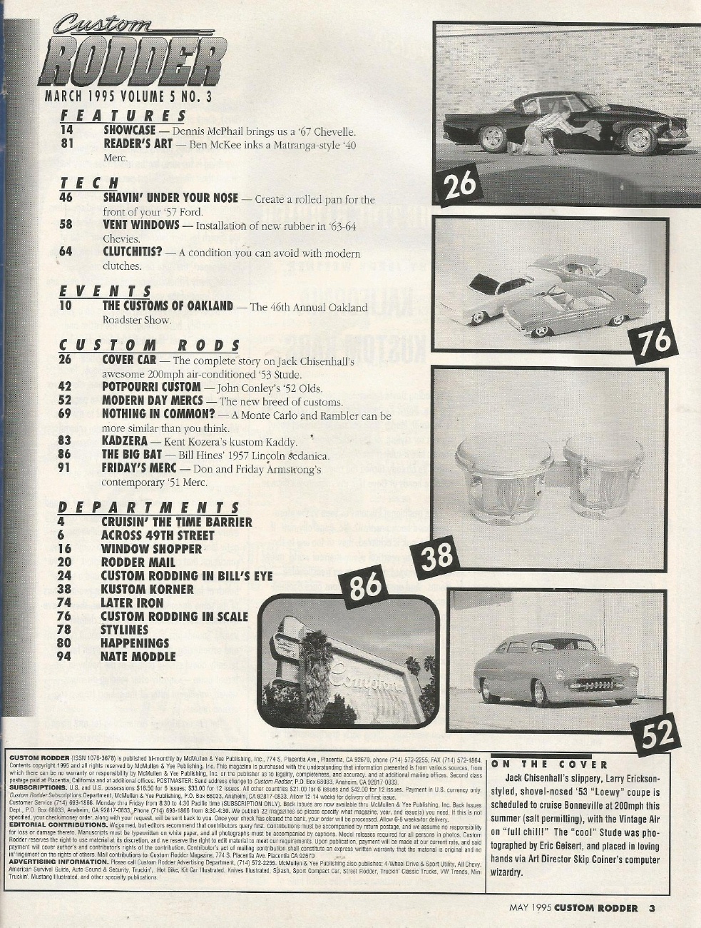 Reviews CUSTOM RODDER 1995 MAY - 200 MPH STUDEBAKER, OAKLAND, ROLL PAN, NOSE SHAVED