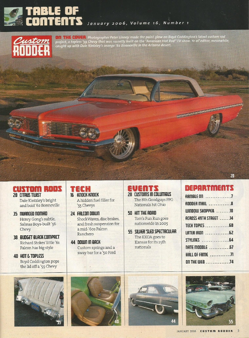 Reviews CUSTOM RODDER 2006 JAN - FALCON AIR SPRINGS, BOYD'S TOPLESS '59 CHEVY
