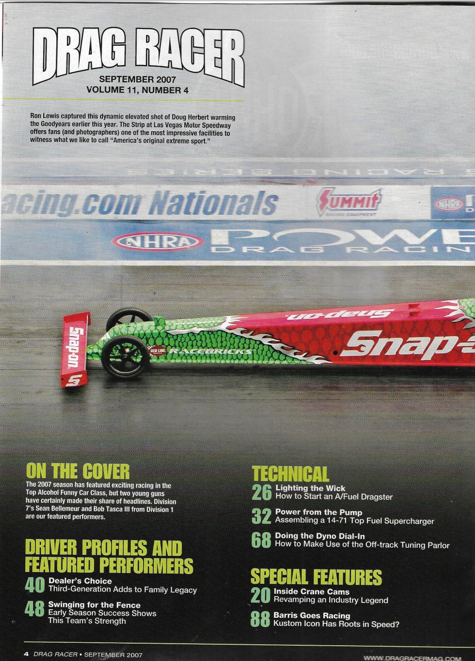 Reviews DRAG RACER 2007 SEPT - FUNNY CAR YOUNG GUNS, TOP FUEL BLOWER BUILD, CRANE CAMS