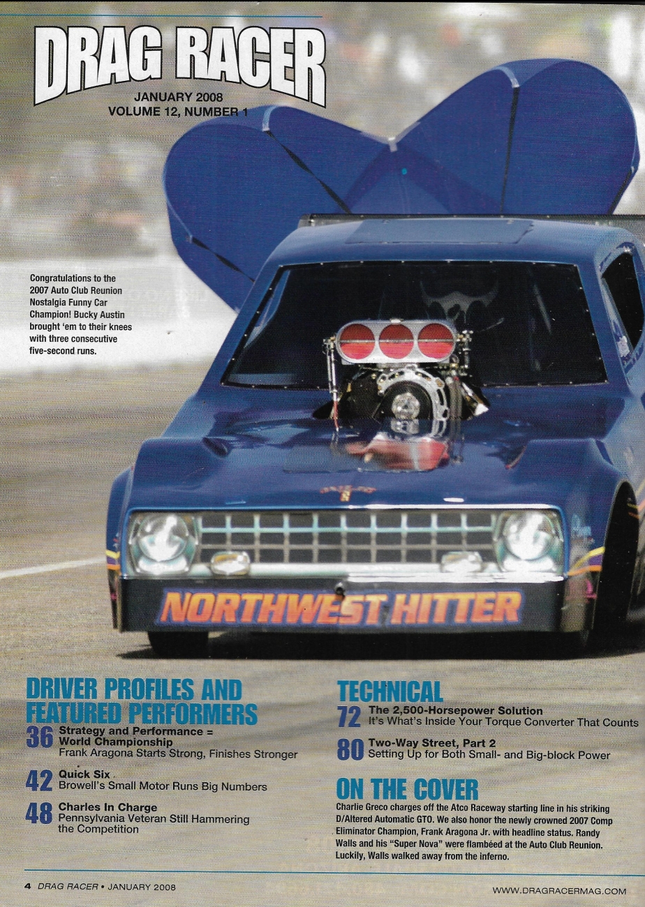 DRAG RACER 2008 JAN - WLLY PARKS, CHARLIE GRECO, BRIAN BROWELL'S DRAGSTER