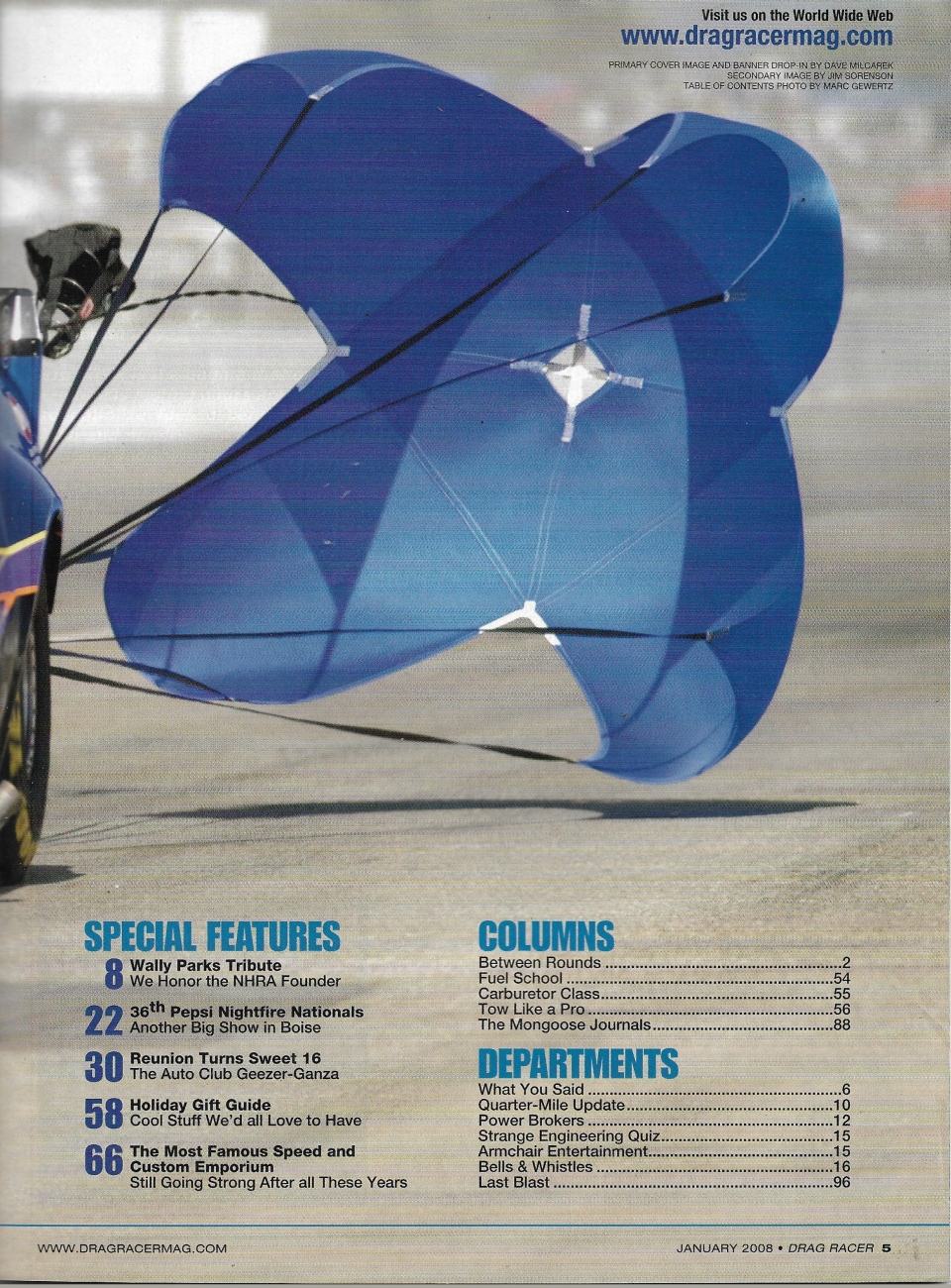 Reviews DRAG RACER 2008 JAN - WLLY PARKS, CHARLIE GRECO, BRIAN BROWELL'S DRAGSTER