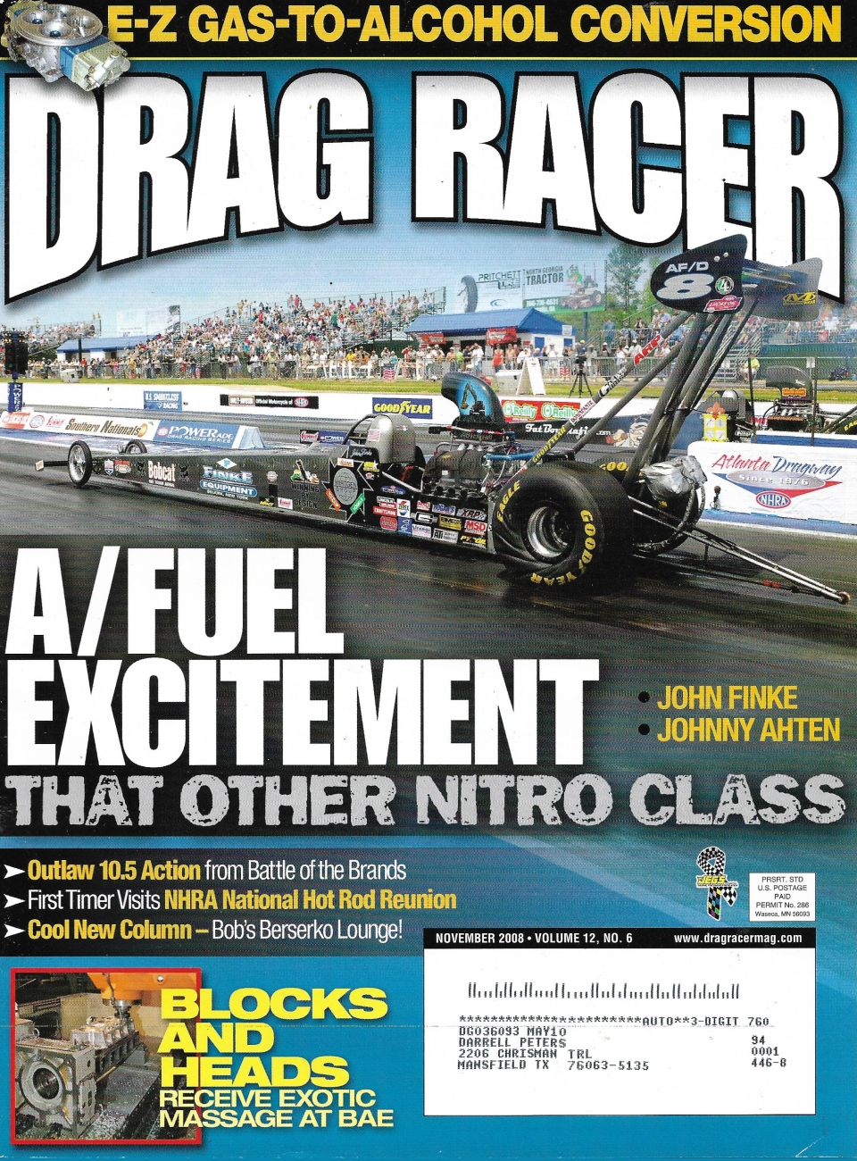 Reviews DRAG RACER 2008 NOV - A/FUEL - JOHN FINKE, JOHNNY AHTEN, BOB BERSERKO LOUNGE