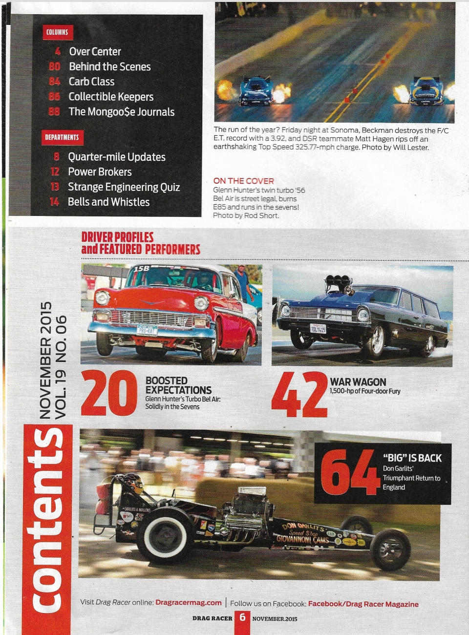 DRAG RACER 2015 NOV - BECKMAN & PROCK, MUSTANG CLUTCH UPGR, GUAGE INSTALLS
