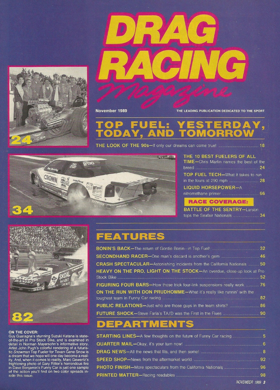 Reviews DRAG RACING 1989 NOV - GREATEST FUELERS, RUN 4s, BIKE Spcl, FARIA