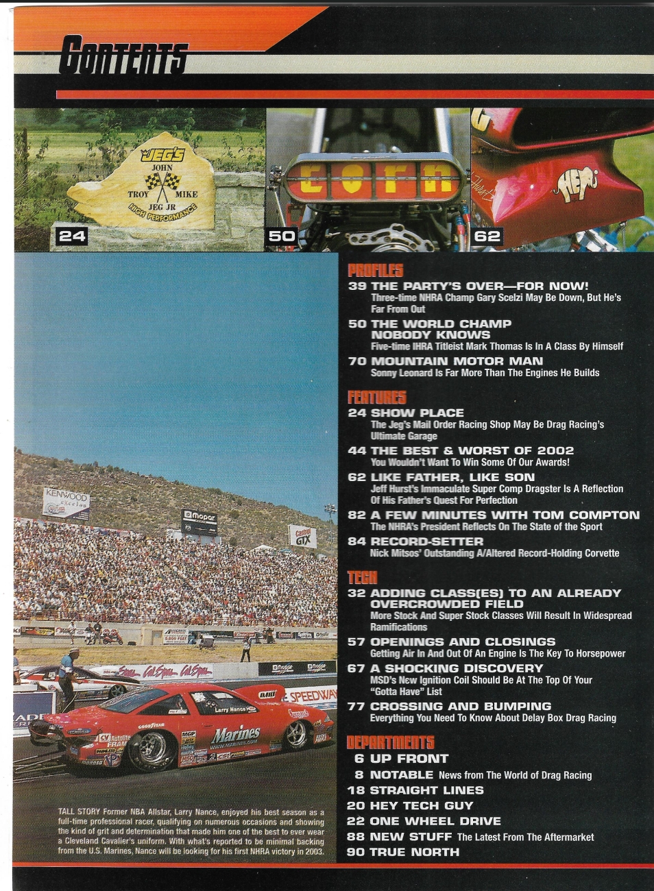 Reviews DRAG RACING ACTION 2003 MAR - JEG'S RACE SHOP, DELAY BOX RACING, GARY SCELZI