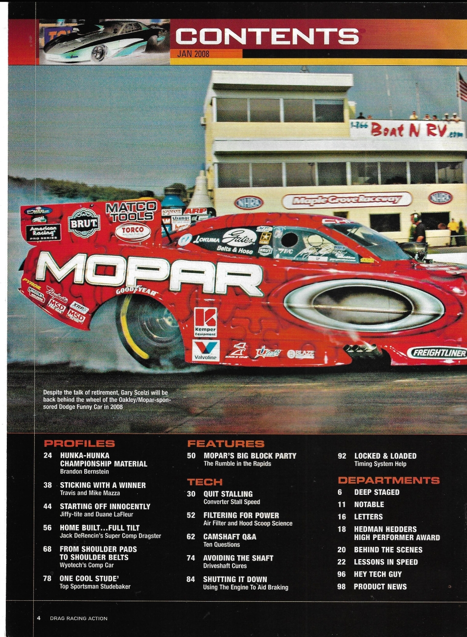 Reviews DRAG RACING ACTION 2008 JAN - HOOD SCOOPS/AIR FILTERS, TORQUE CONVERTER STALL