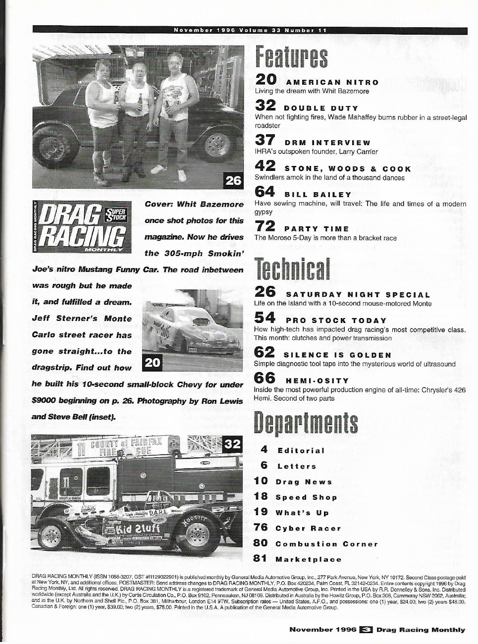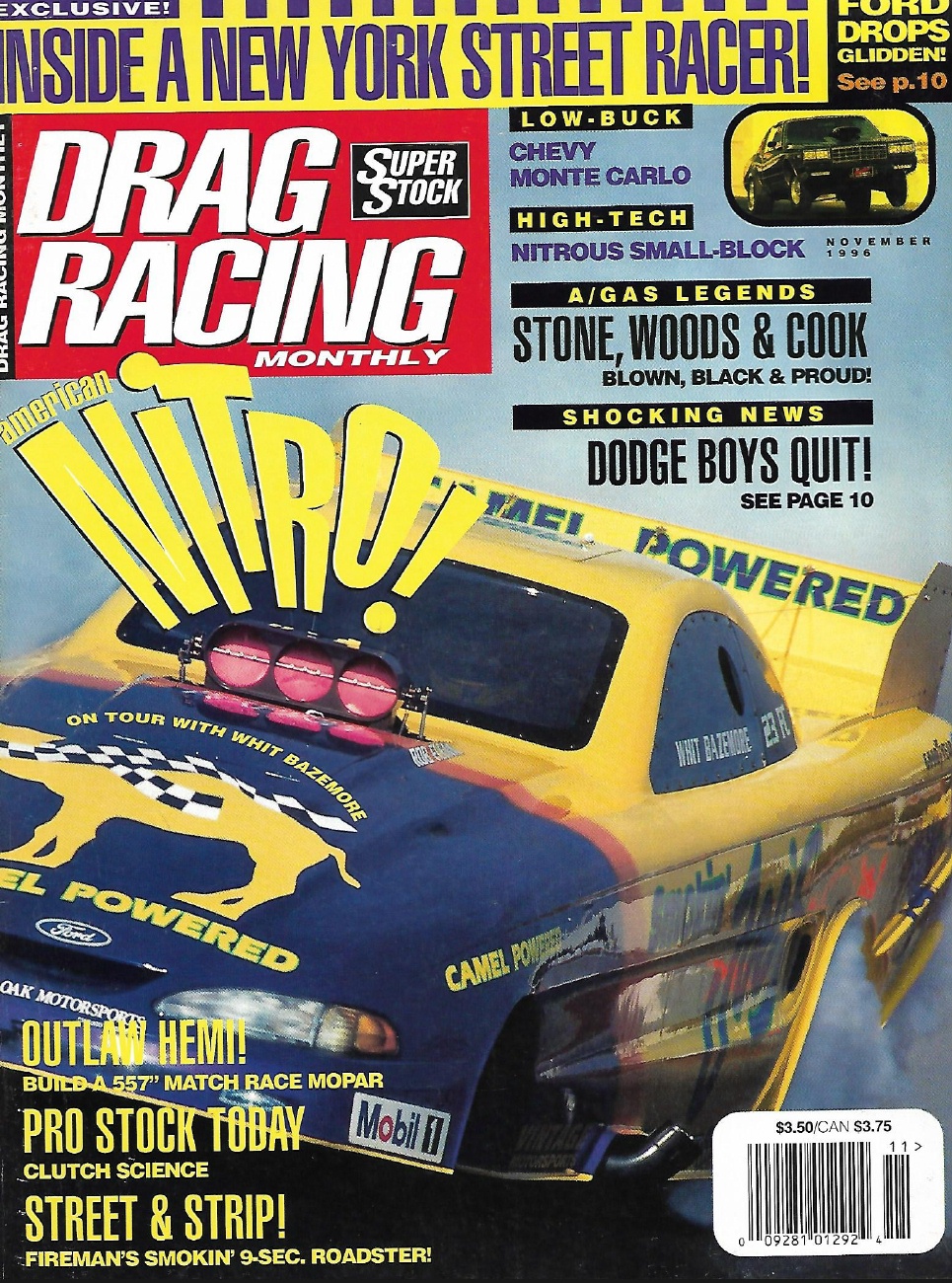 Reviews DRAG RACING MONTHLY 1996 NOV - STONE-WOODS-COOK GASSERS, MAHAFFEY