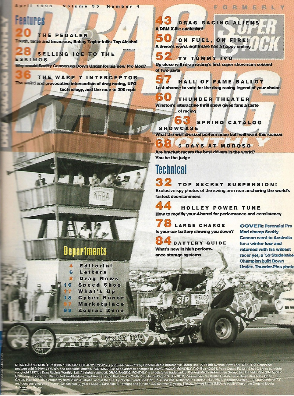 Reviews DRAG RACING MONTHLY 1998 APR - CANNON, FLORIDA PRO BOWL, BOBBY TAYLOR