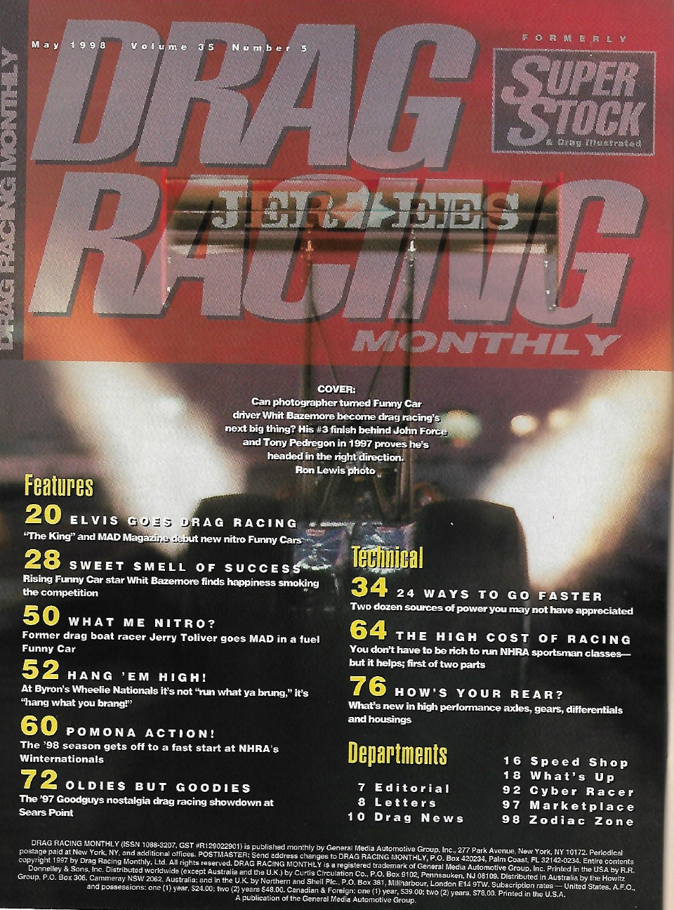 Reviews DRAG RACING MONTHLY 1998 MAY - BAZEMORE, NOSTALGIA SEARS POINT, TOLIVER