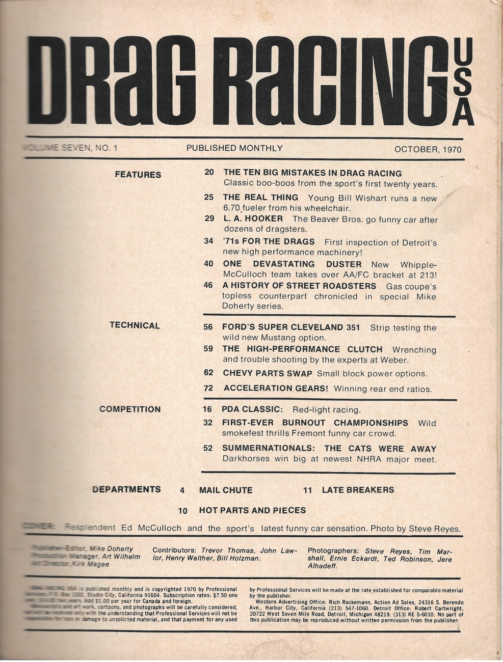 Reviews DRAG RACING USA 1970 OCT - ED MCCULLOCH, HIST OF STREET ROADSTERS, LA HOOKER