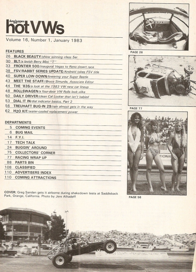 Reviews DUNE BUGGIES & HOT VW'S 1983 JAN - DROP A DUB, NEW 83s, WATER COOLED BUGS*